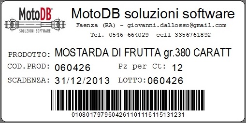 i layout delle etichette con loghi, immagini, codici a barre e qualsiasi informazione del database,